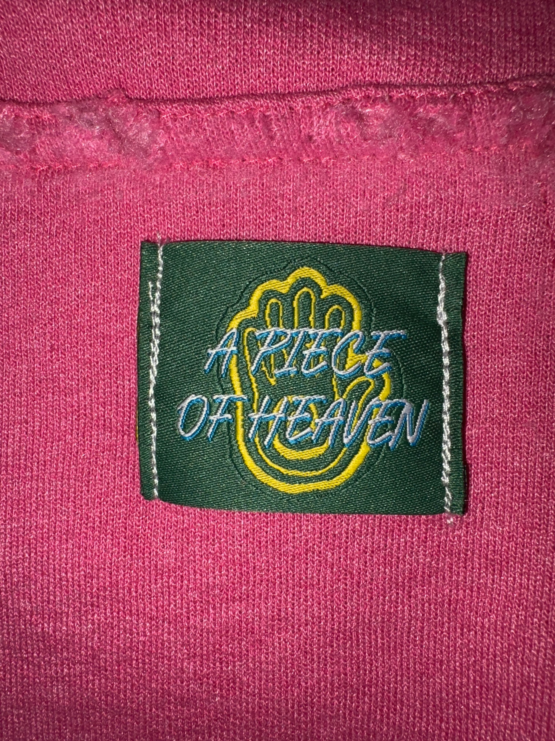 Embroidered logo on chest with sewed tag on pocket